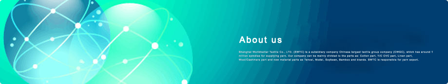 Shanghai Worldbetter Textile Co., LTD. (SWTC) is a subsidiary company Chinese largest textile group company (CWGC), which has around 1 million spindles for supplying yarn. Our company can be mainly divided to the parts as: Cotton part, T/C CVC part, Linen part, Wool/Cashmere part and new material parts as Tencel, Modal, Soybean, Bamboo and blends. SWTC is responsible for yarn export.